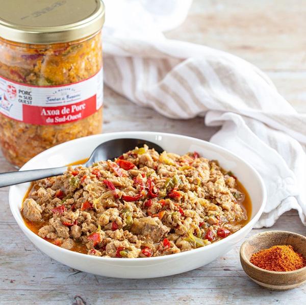 Autre classique de la cuisine du Pays basque, l’axoa est un ragoût à base de veau coupé très finement et de poivrons relevés au piment d’Espelette. Le mot axoa viendrait en réalité du français « hacher ». Ce plat peut également être confectionné avec d’autres viandes comme l’agneau ou le porc, à condition que celles-ci soit coupée finement.