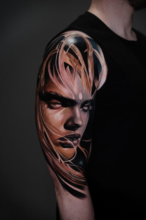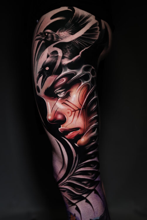 → Le tatouage, réalisé sur mesure avec 6 tatoueurs présents au shop, et une vraie exigence artistique.