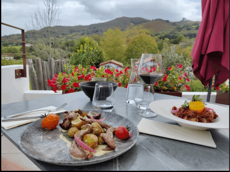 Le restaurant est une véritable adresse gastronomique : cuisine locale revisitée avec finesse, produits du Pays Basque sublimés, assiettes généreuses et précises. Le lieu est chaleureux, décoré avec du cachet, et le menu change au fil des saisons pour toujours rester au plus près des saveurs du moment.