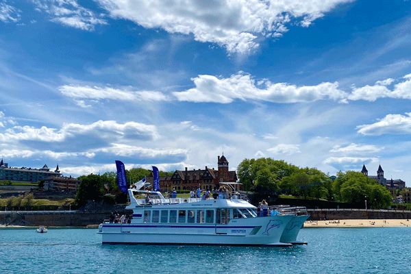 Mesdames et messieurs, nous vous proposons d’embarquer à bord du magnifique catamaran, « CIUDAD SAN SEBASTIAN », pour une promenade unique et mémorable le long de la Baie de Saint-Sébastien. Prêts à vous émerveiller devant les vues incroyables de la côte de Gipuzkoa depuis l’océan? Préparez les appareils photos car le spectacle est garanti!