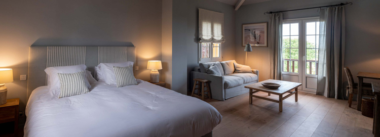 La première, la suite Belharra en hommage à la vague mythique qui déferle au Pays Basque, mesure 27,7 m². Elle peut accueillir deux adultes et plus grâce au canapé-lit présent. Ici, vous apprécierez l’ambiance bord de mer et son balcon donnant sur les paysages typiques du Pays Basque et sa vue sur l’océan.